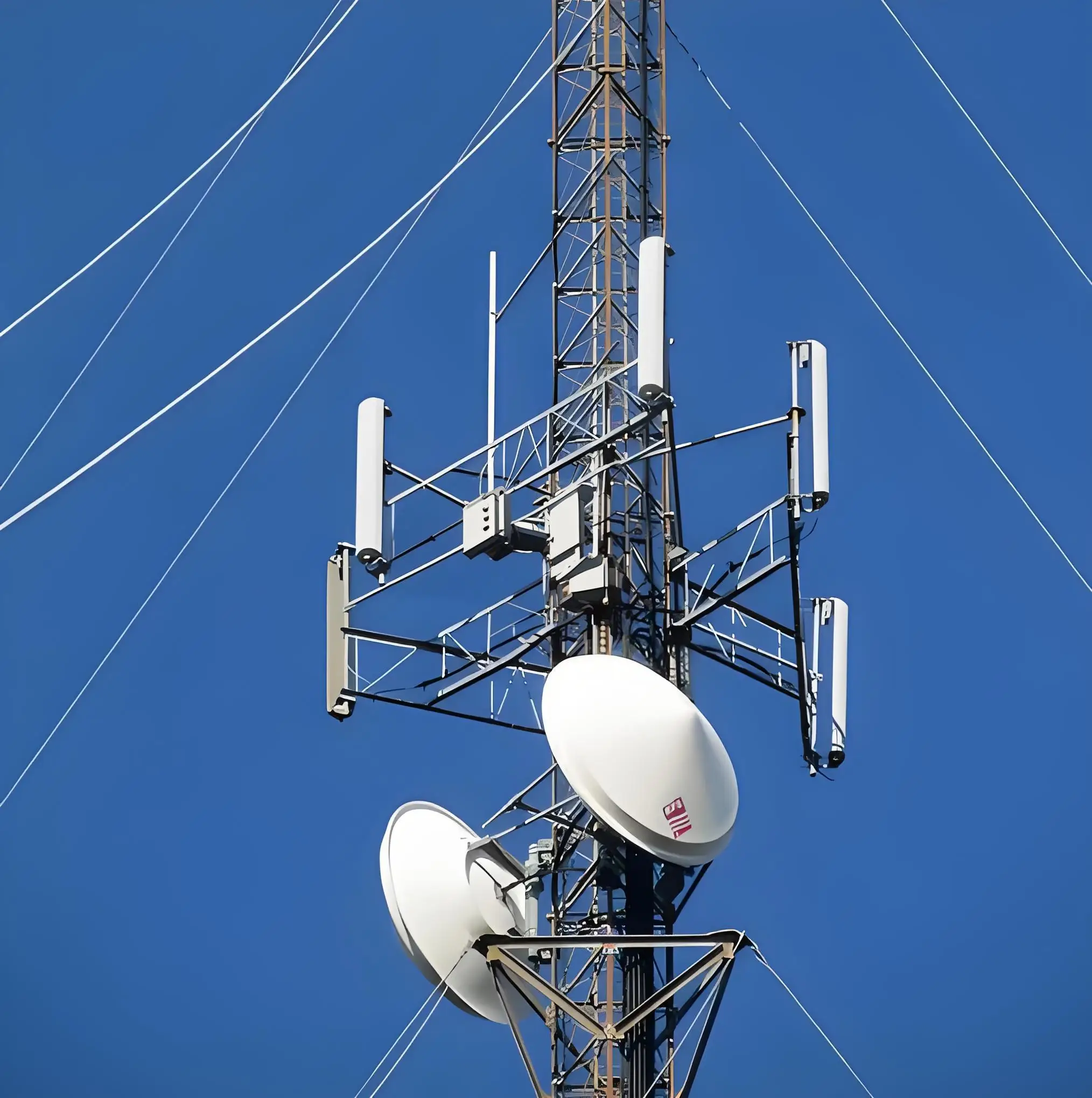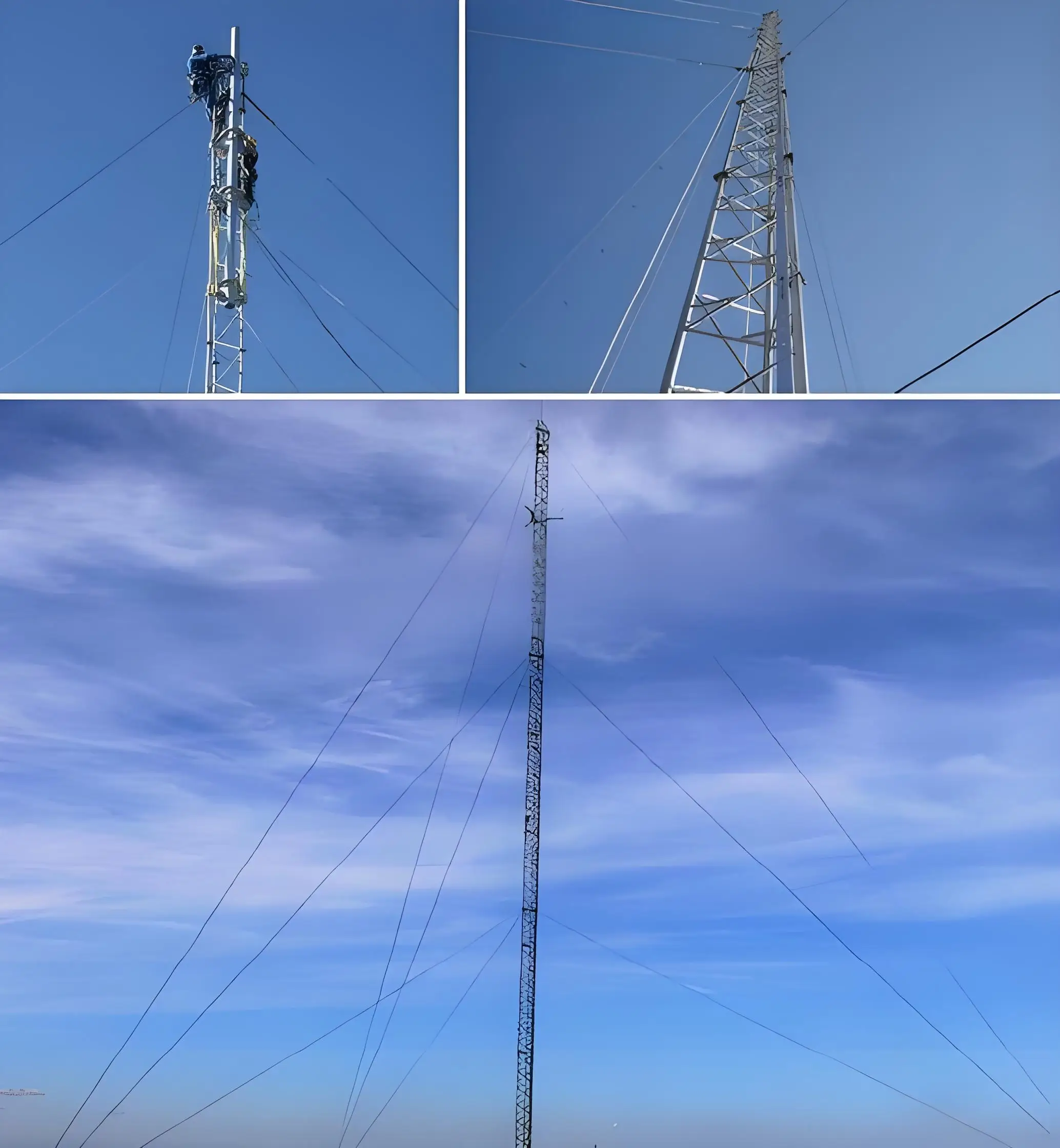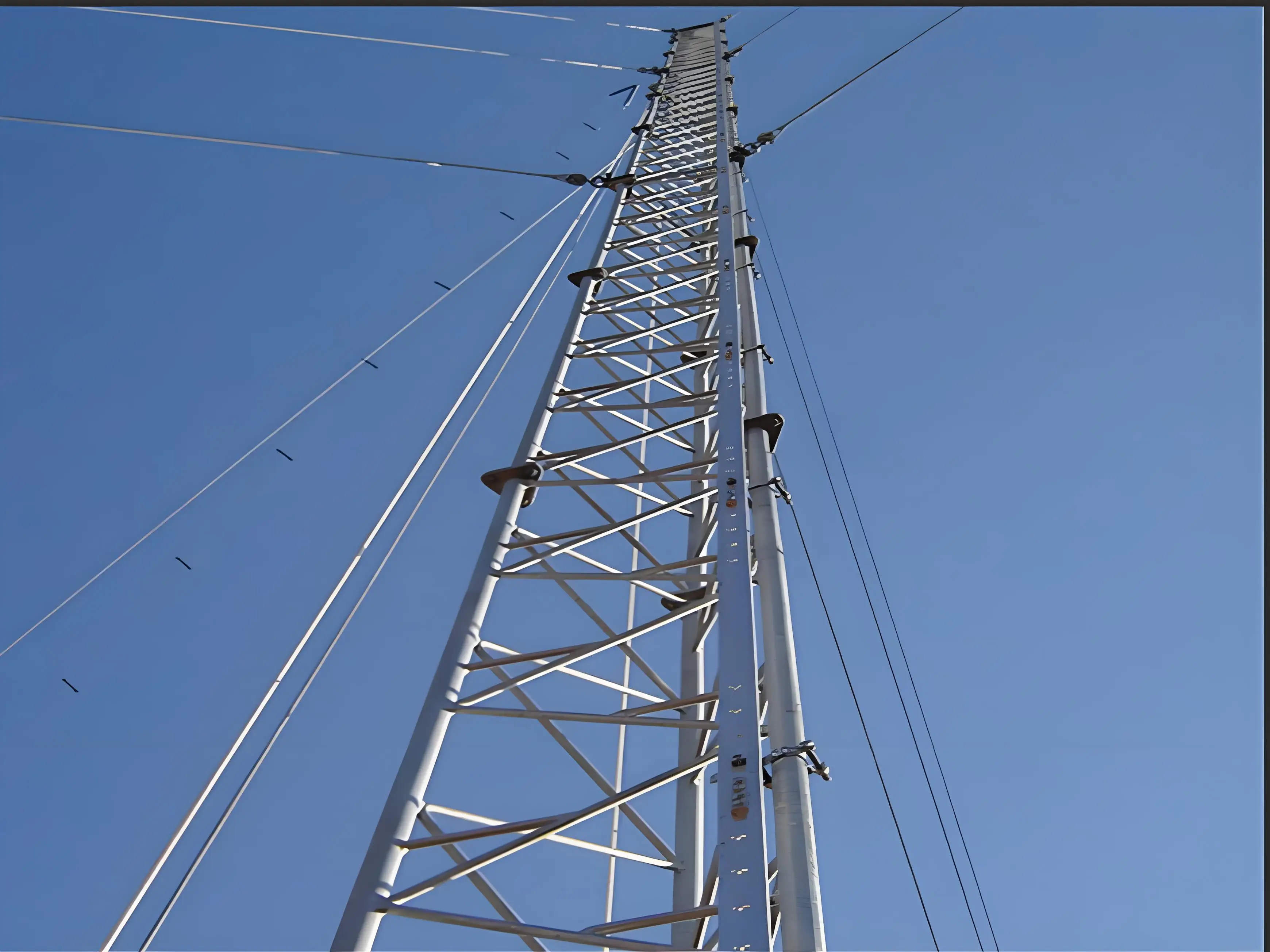The lattice tower design incorporates proven engineering principles that optimize strength-to-weight ratios while providing excellent wind load resistance characteristics. This structural configuration has been specifically adapted for rural telecommunications applications, where towers must withstand diverse environmental conditions while supporting various antenna arrays, microwave dishes, and auxiliary equipment. The guyed tower system utilizes strategically positioned guy wires that provide additional stability and load distribution, enabling the tower to achieve greater heights with reduced material requirements compared to self-supporting alternatives.