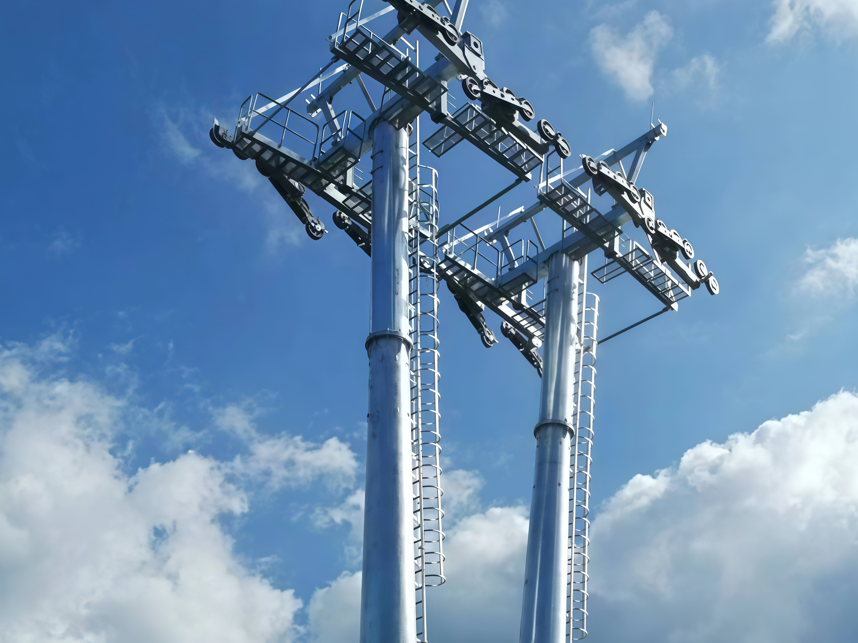 A single tube power tower is mainly composed of a single large-diameter conical steel pipe, and the cross-section of the tower body is commonly circular or regular polygon, presenting a conical appearance with a larger lower part and a smaller upper part. The stable connection between each tower section is achieved through plugs or flanges, and there is an internal ladder for personnel to climb and maintain. At the same time, internal wiring is used to protect the feeder and maintain the balance of the tower body.